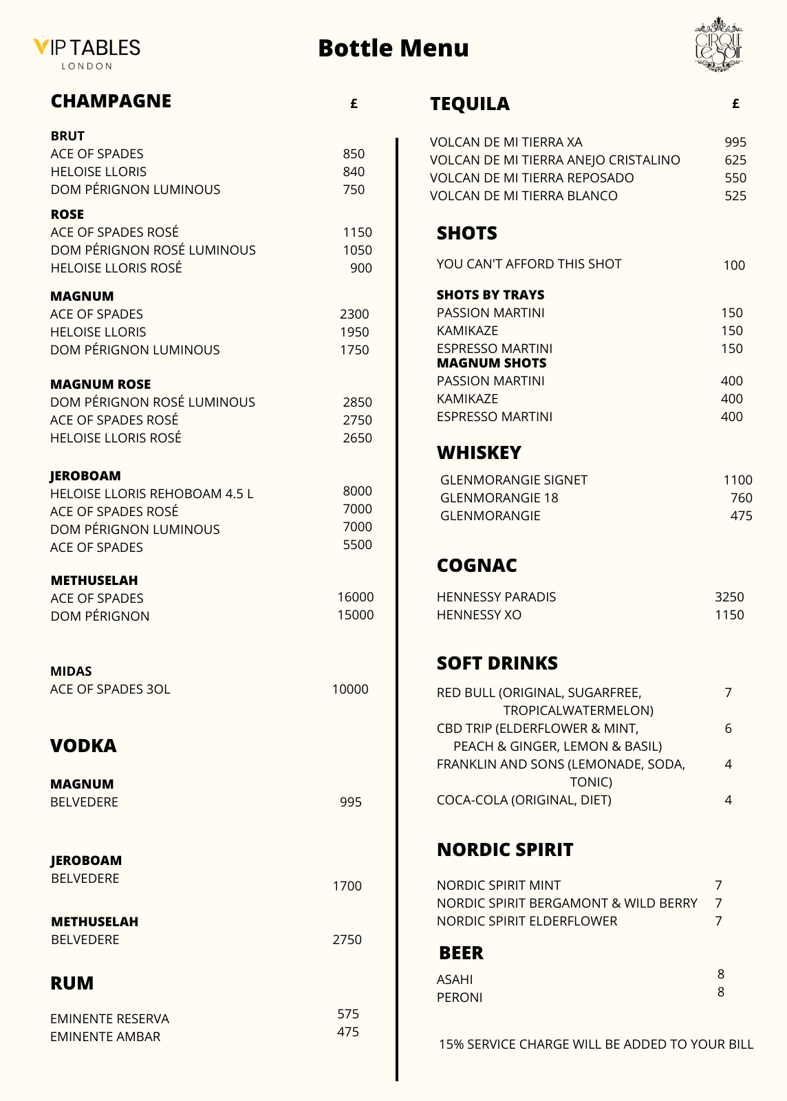 We can arrange the party per your requirements if you book the Cirque le Soir table with us. Here are the prices for the Table along with the range we provide.