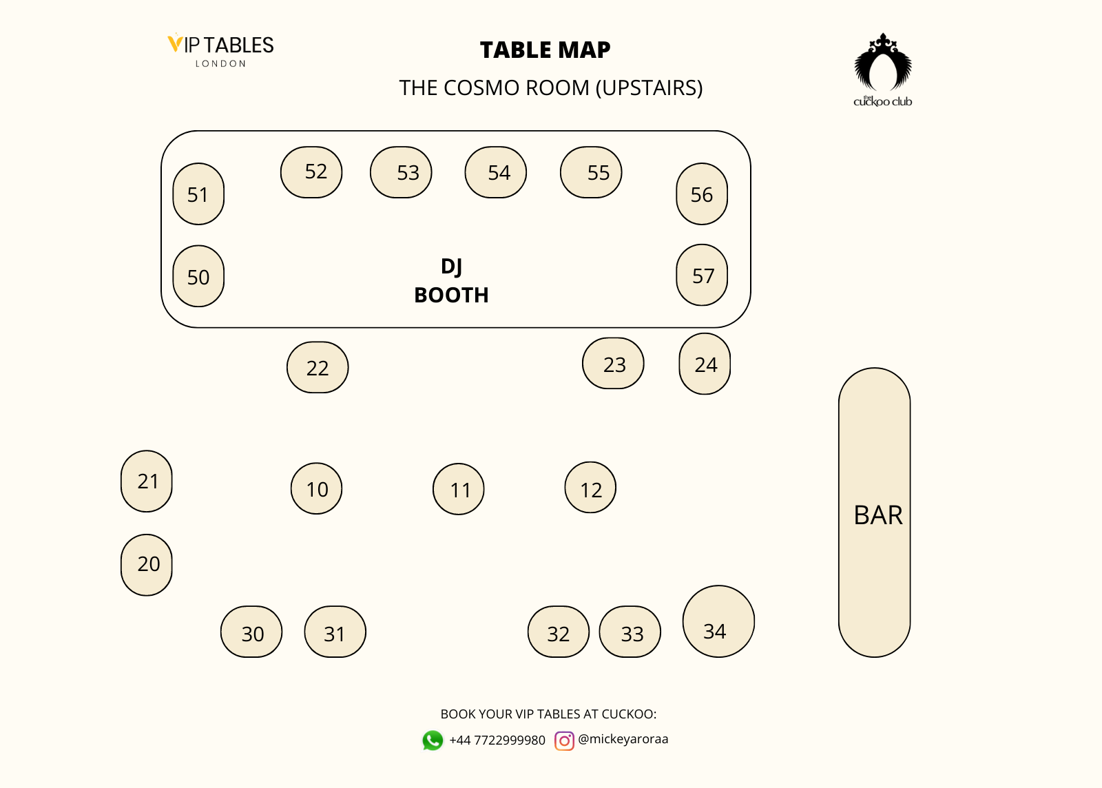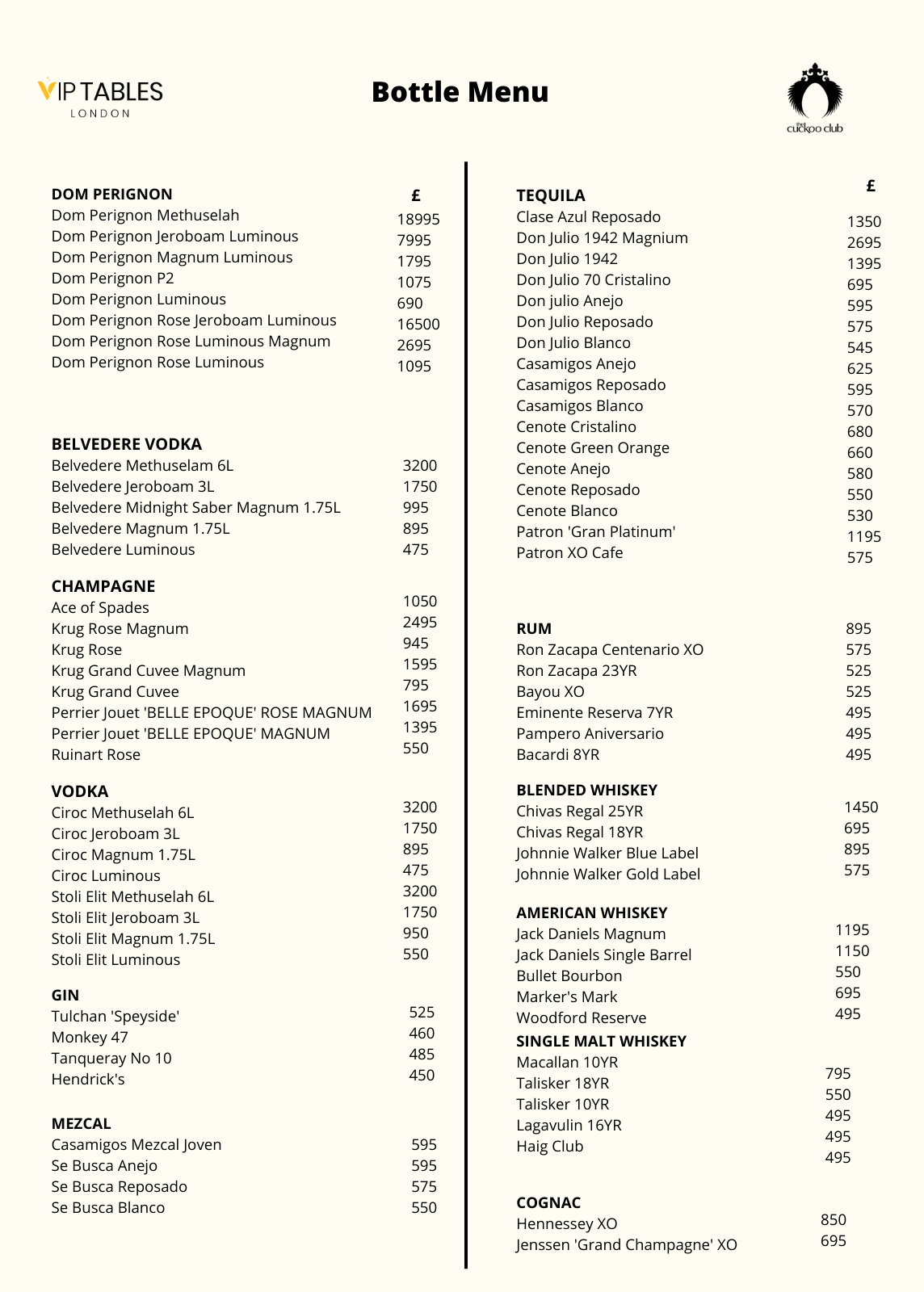 The standard price for the guestlist is £20. But depending on the night, it can change to £30-£40. Table booking for the Cuckoo Club starts from £1000.