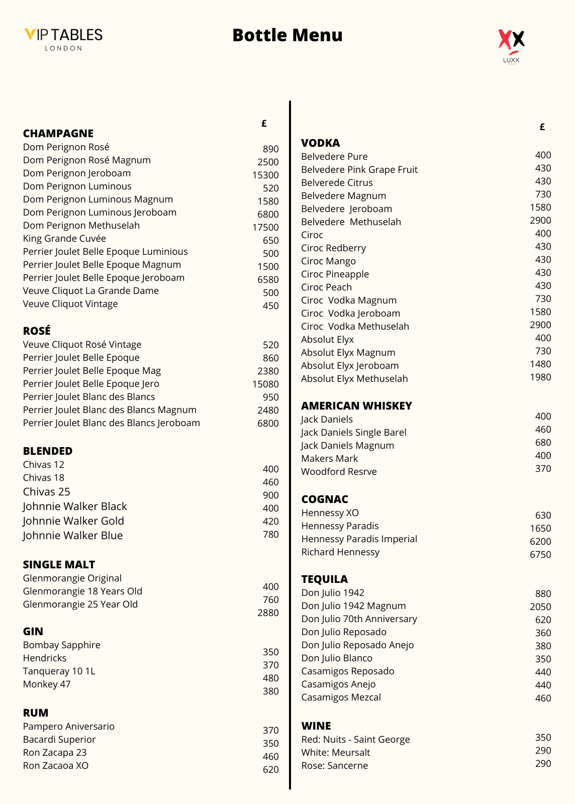 On the other hand, when it comes to Table Booking, there are two types of tables at Luxx: The Standard and The VIP. For mixed groups, the first one has a price of £1000 minimum spend for groups of up to 3 people and £2000 minimum spend for groups of up to 10 guests. The second table has a £2000 minimum spend for groups of up to 3 guests and £3000 minimum for groups of up to 10.