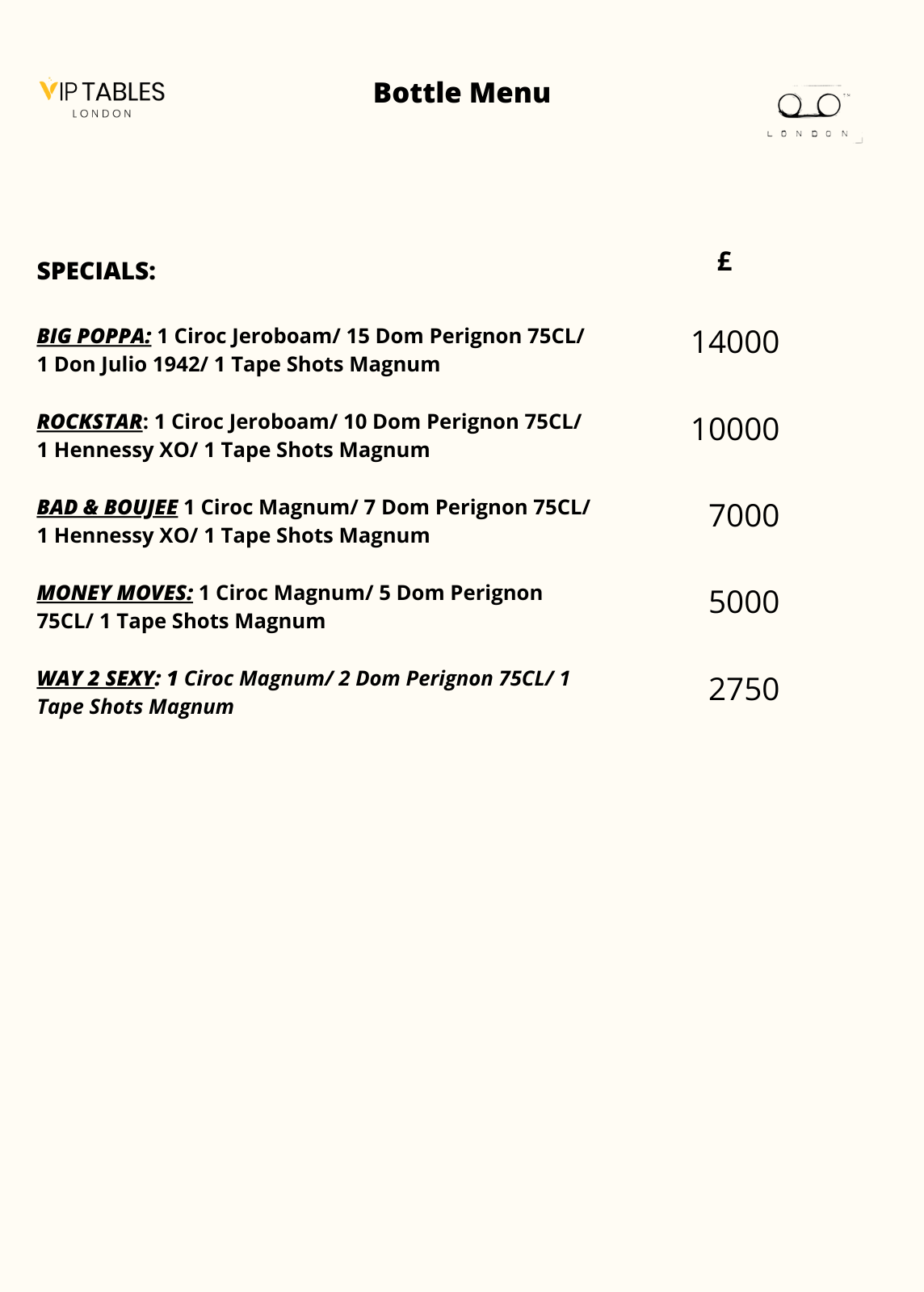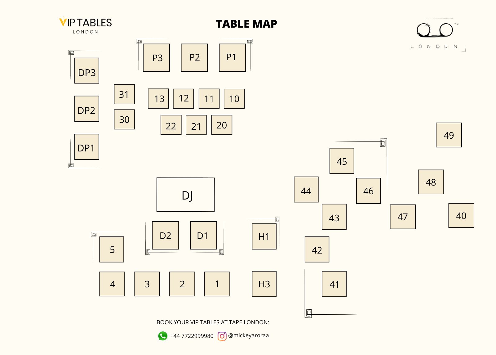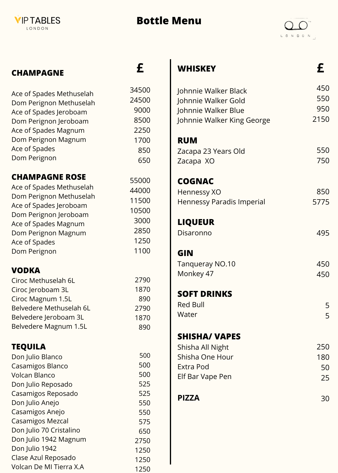 Tape London has two types of tables: The Standard and The VIP. For mixed groups, the first one has a price of £1000 minimum spend for groups of up to 4 and £2000 minimum spend for groups of up to 10 guests. The second table has a £2000 minimum spend for groups of up to 3 guests and £3000 minimum for groups of up to 10.